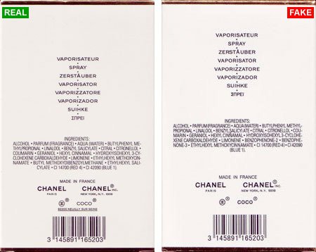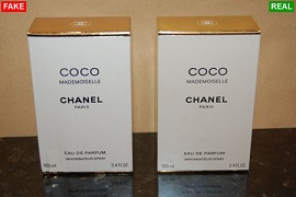 چگونه عطر کوکو مادمازل شنل تقلبی را بشناسیم؟ در ابتدا عطر اصل و تقلبی مشابه به نظر میرسند. اما اگر با دقت و از نزدیک نگاه کنید، یک حاله زرد رنگ در جعبه عطر اصل ملاحظه میکنید اگر به نوشته های پشت جعبه دقت کنید یک تفاوت در فریم بندی و سایز نوشته ها مشاهده خواهید کرد. البته شایان ذکر است که مقداری نوشته های نسخه آمریکایی با نسخه فرانسوی متفاوت بوده اما نوع، اندازه و کیفیت فونت در هر دو نسخه اصل فرانسوی و آمریکایی یکسان است.