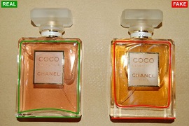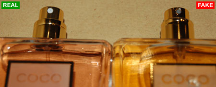 4.رنگ عطر کوکو مادمازل شنل اصلی صورتی و رنگ عطر تقلبی زرد/قهوه ای است. همچنین عطر کوکو مادمازل شنل اصل به دلیل پرفیوم بودن دارای یک رایحه قوی با دوام زیاد در حدود 8 ساعت است. اما عطر کوکو مادمازل شنل تقلبی از دوام در حدود 1 ساعت برخوردار است. همچنین کیفیت بوی عطر تقلبی با عطر اصلی متفاوت است.