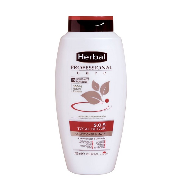 نرمکننده و ماسک مو Herbal Professional Care S.O.S Total Repair یک محصول حرفهای 2 در 1 است که با ترکیبات ترمیمکننده مانند روغن جوجوبا و فیتوسرامیدها، موهای آسیبدیده، خشک و شکننده را بهطور عمقی بازسازی کرده و نرمی، استحکام و درخشندگی را به مو بازمیگرداند. این محصول فاقد پارابن و رنگ مصنوعی بوده و گزینهای ایدهآل برای موهای رنگشده و دکلره است.